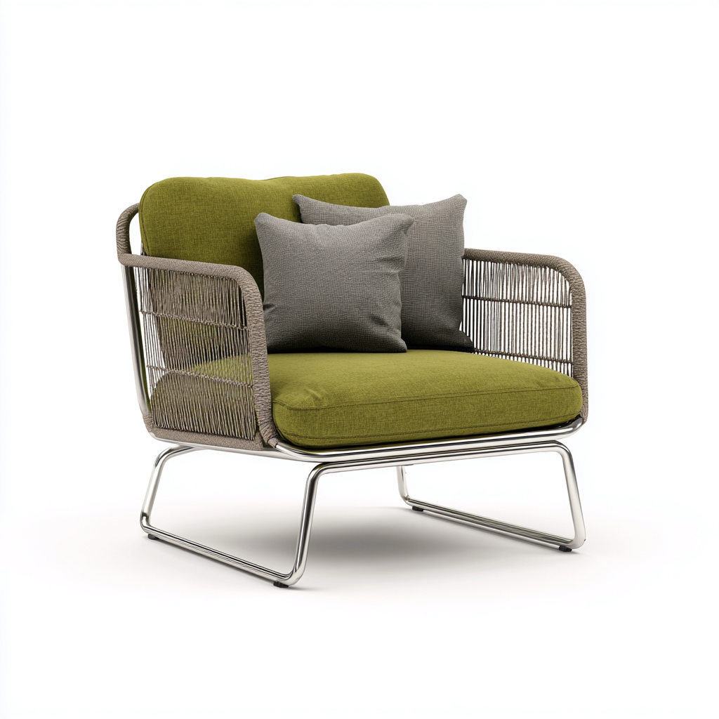 Poltrona da giardino in metallo intrecciato con seduta imbottita 78x72 cm - verde oliva-grigio - design moderno per esterno