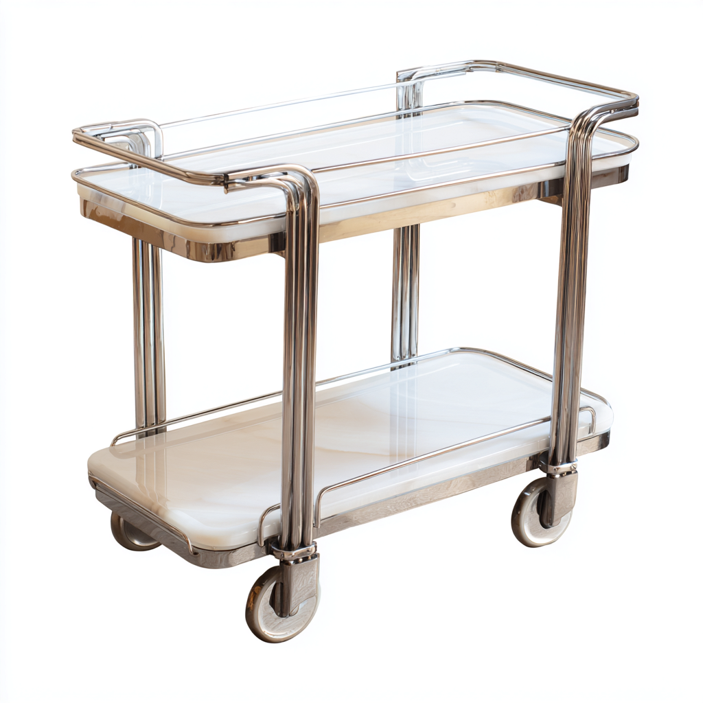 Questo carrello da cucina dal design elegante e contemporaneo è ideale come supporto funzionale per la preparazione, il servizio e l'organizzazione degli accessori in cucina o sala da pranzo. La struttura slanciata consente un utilizzo pratico anche in spazi contenuti.