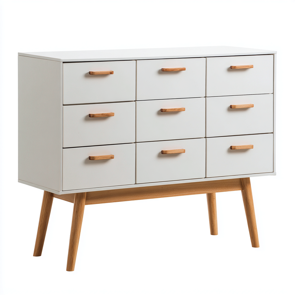Questa cassettiera dal design moderno è pensata per offrire una soluzione di contenimento funzionale e ordinata per camera da letto soggiorno o ingresso. Le linee pulite e le proporzioni equilibrate la rendono facile da integrare in diversi contesti abitativi mantenendo un aspetto sobrio ed elegante.