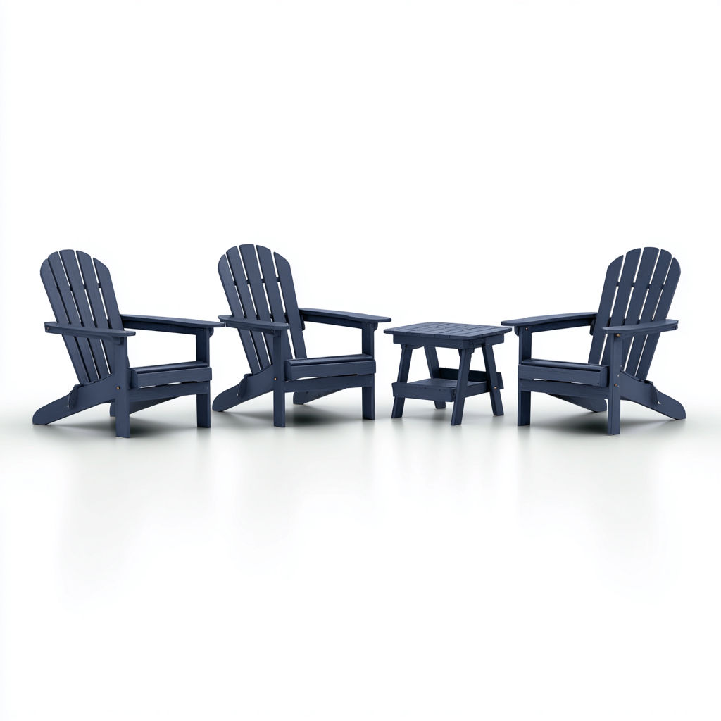 Il set è realizzato in legno con finitura blu uniforme. La struttura solida e la lavorazione accurata garantiscono stabilità, superfici lisce e una buona resistenza all'uso quotidiano in ambienti esterni.